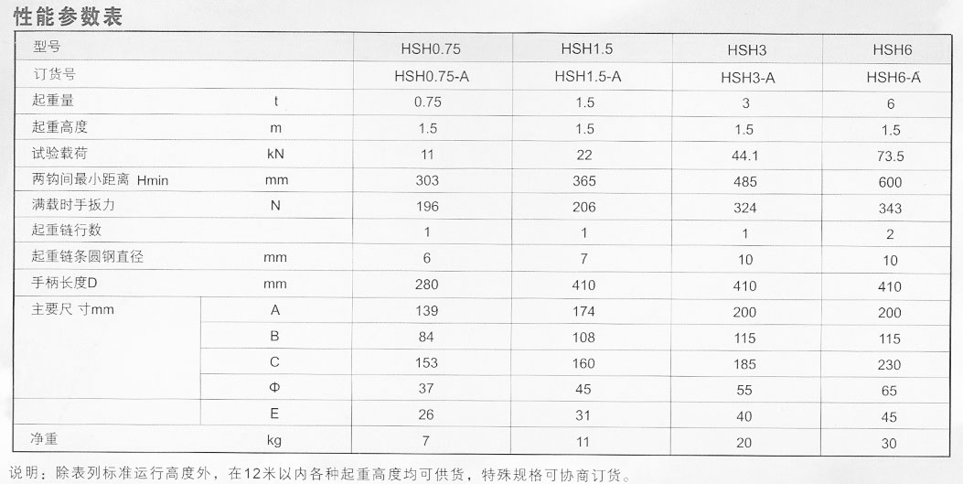 | HSH型3噸手扳葫蘆技術(shù)參數(shù): | |