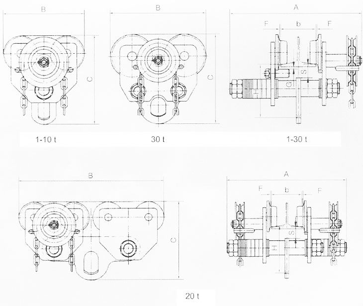 GCL型0.5-30噸手鏈單軌小車 產(chǎn)品名稱:GCL型0.5-30噸手鏈單軌小車