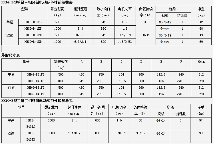 環(huán)鏈電動(dòng)葫蘆HHXG-B型0.5-5T可分為四種:HHXG-B型單鏈三相環(huán)鏈電動(dòng)葫蘆、HHXG-B型雙鏈三相環(huán)鏈電動(dòng)葫蘆、HHXG-B型三鏈三相環(huán)鏈電動(dòng)葫蘆、HHXG-B型四鏈三相環(huán)鏈電動(dòng)葫蘆。