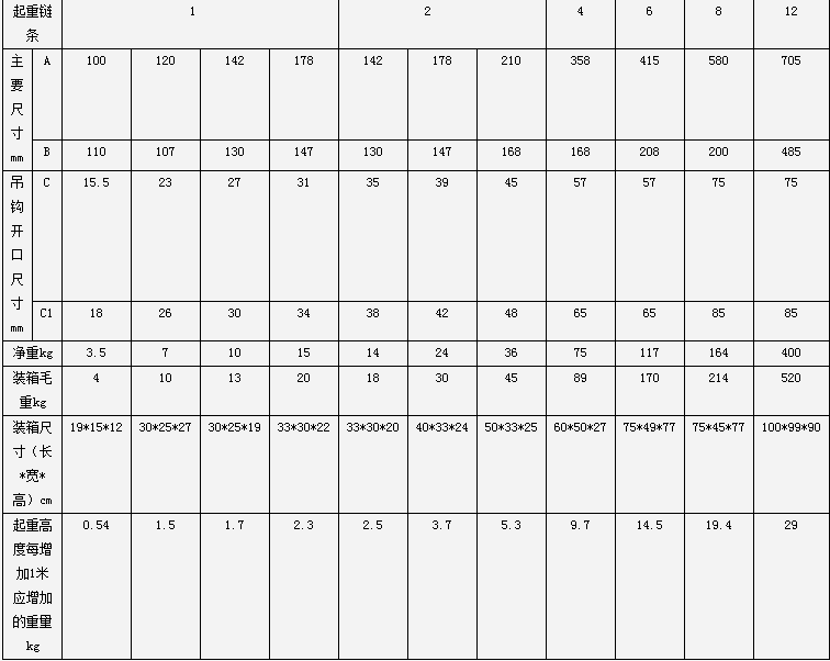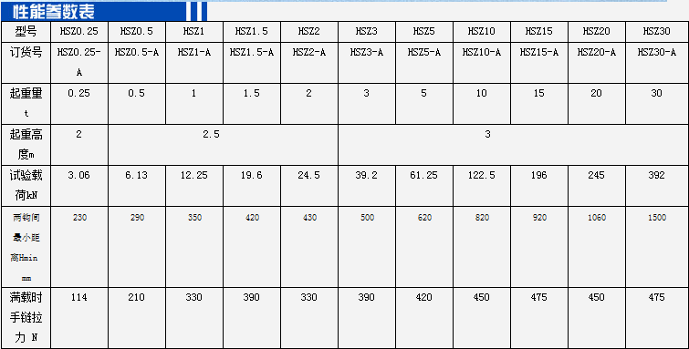 HSZ-A型3噸手拉葫蘆參數(shù): | |