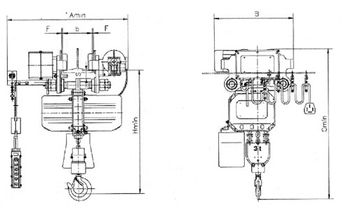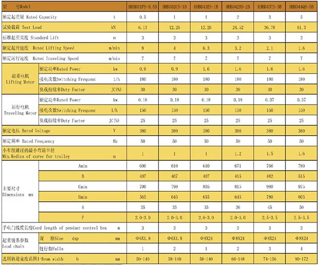 電動小車式環(huán)鏈電動葫蘆HHBD-B型參數(shù)圖: